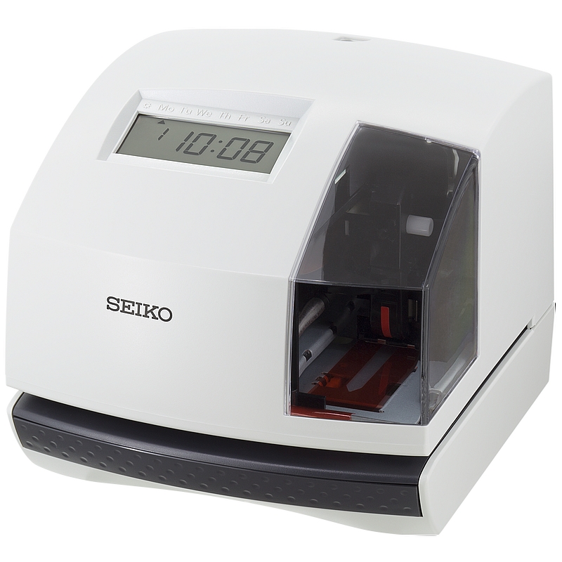 Nuovo modello di marcatempo SEIKO con prestazioni avanzate e configurazione da PC. Anch’esso stampa su qualsiasi scheda di lavorazione o documento ma è personalizzabile con 4 modelli di stampa selezionabili da tasto dedicato. Quando è richiesta una stampa specifica, il TP-50 è in grado di produrla; un commento personalizzato, una stampa rovesciata, un contatore, un countdown progressivo, etc. L’area di stampa è illuminata così da semplificare e facilitare la centratura.